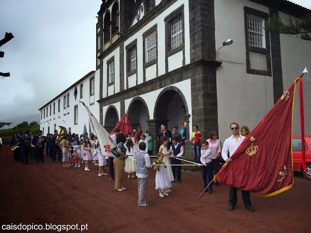 Aqui fica a reportagem fotográfica da festa de 2015 no Cais do Pico, com a tradicional missa na igreja anexa ao Convento São Pedro de Alcântara e almoço no salão da Filarmónica Liberdade do Cais do Pico - filarmónica esta que acompanhou as mudanças de coroa e efetuou concerto antes da distribuição de vésperas.