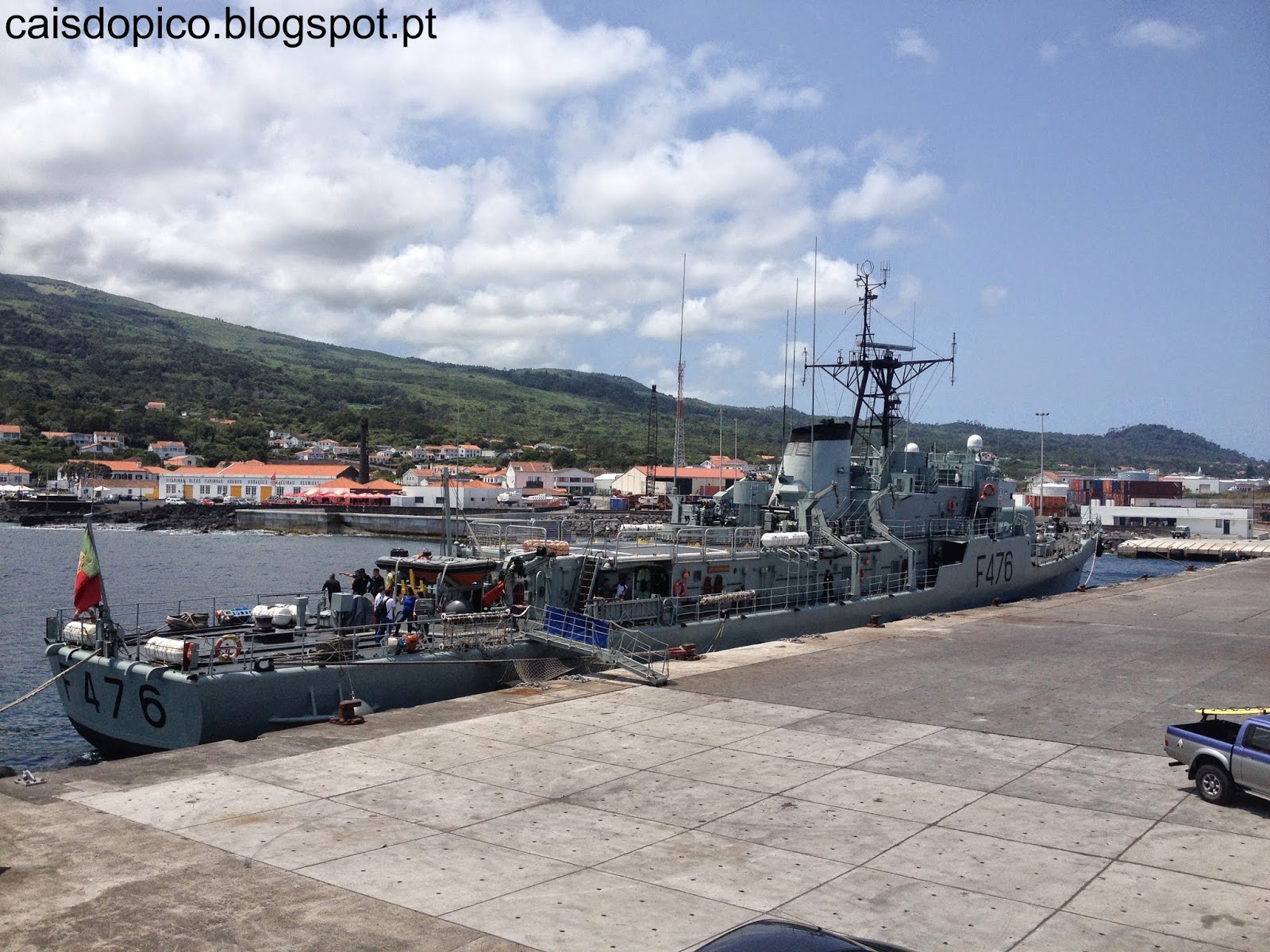 A Corveta NRP Jacinto Cândido está por estes dias atracada no porto do Cais do Pico (clique aqui para mais informações sobre este navio).