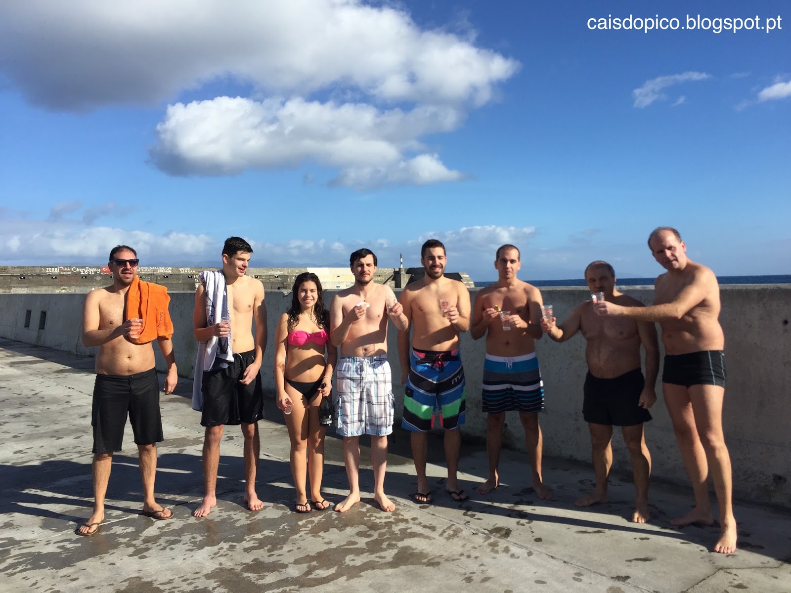 No Cais do Pico, vila de São Roque do Pico, um grupo de amigos mantém a tradição com vários anos de dar as boas-vindas ao Ano Novo com um banho de mar.